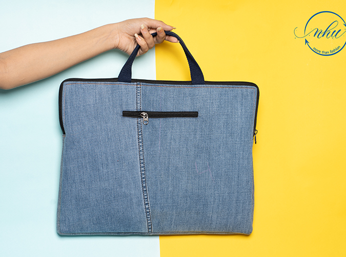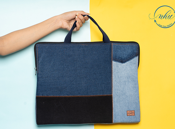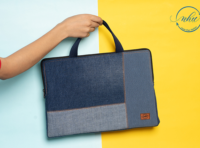 This Repatched Upcycled Denim Laptop Sleeve is crafted from carefully selected denim patches, giving it a stylish, modern look while promoting sustainability. The patchwork design highlights three contrasting denim shades, stitched together with visible seams for added character. With its strong zipper closure and sturdy handles, this sleeve offers both protection and portability. Perfect for carrying laptops, documents, or tablets, it balances functionality with eco-conscious design.